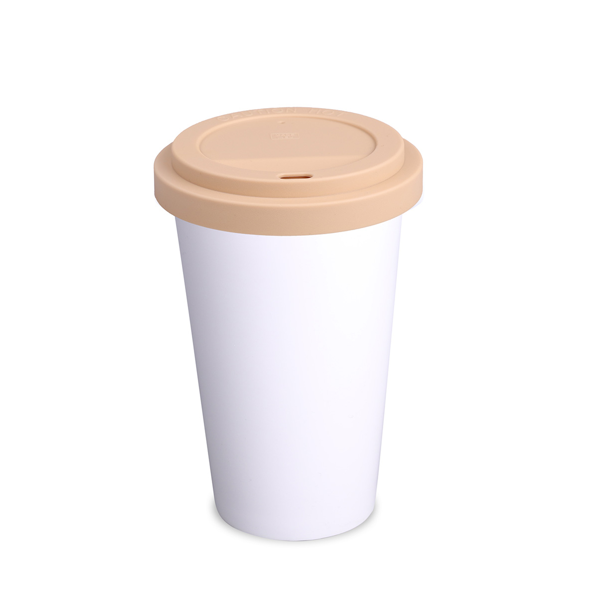 Taza de porcelana promocional con tapa de polímero que protege contra derrames accidentales de bebidas. Modelo dirigido a personas activas, amantes de las excursiones y los viajes. Gracias a su estructura interna de doble pared de porcelana, poco habitual, esta taza se caracteriza por un mayor nivel de aislamiento térmico. El cuerpo de la taza está disponible en blanco y negro satinado. La tapa está disponible en los siguientes colores: blanco, naranja 021C, gris Cool Gray 7, azul marino 294C, marrón 4695C, negro, rosa 4064C, azul 2144C, eucalipto 5493C y arena del desierto 2310C.