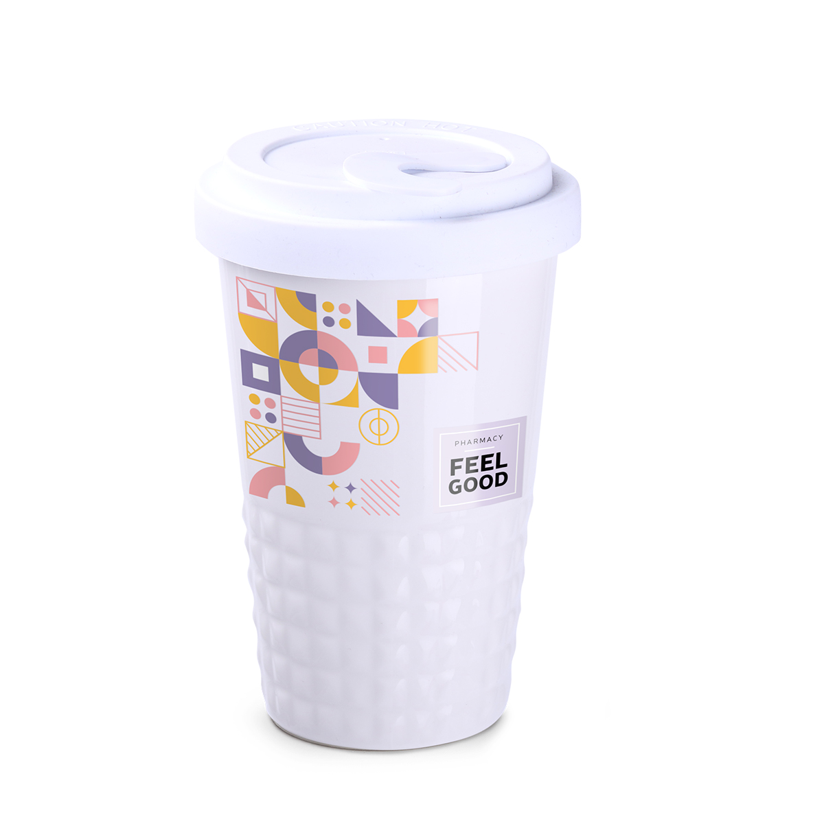 Un acabado elegante de la parte inferior de la taza en forma de protuberancias simétricas. Porcelana, doble pared, que ofrece un excelente aislamiento térmico. Tapa apretada.