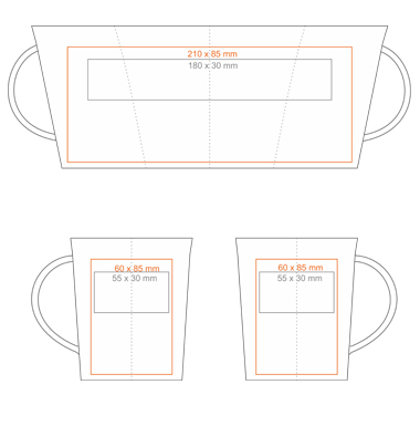 Impresión en el asa (90x10 mm) Impresión en el interior (50x20 mm) Impresión en el fondo exterior (ø35 mm) Impresión oro Impresión plata Impresión en el borde Impresión individual con nombre |