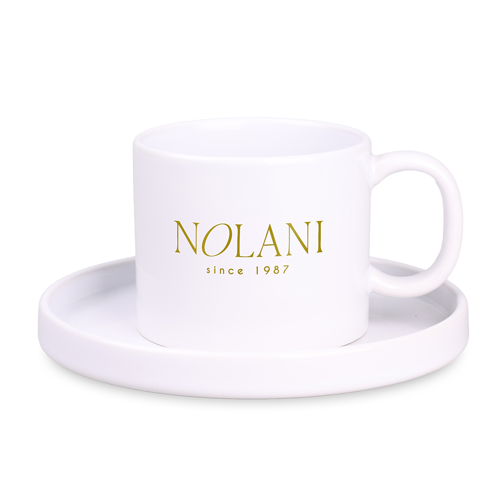 La elegancia reside en la simplicidad. Taza Velo con platillo sencillo sin hueco. Modelo cerámico de forma sencilla y asa ergonómica. También disponible sin platillo.