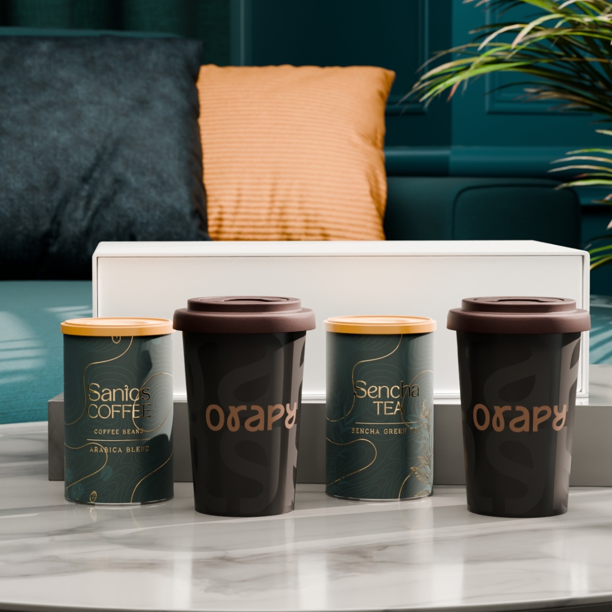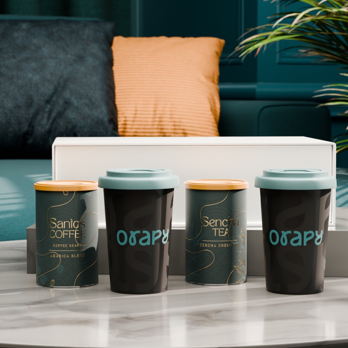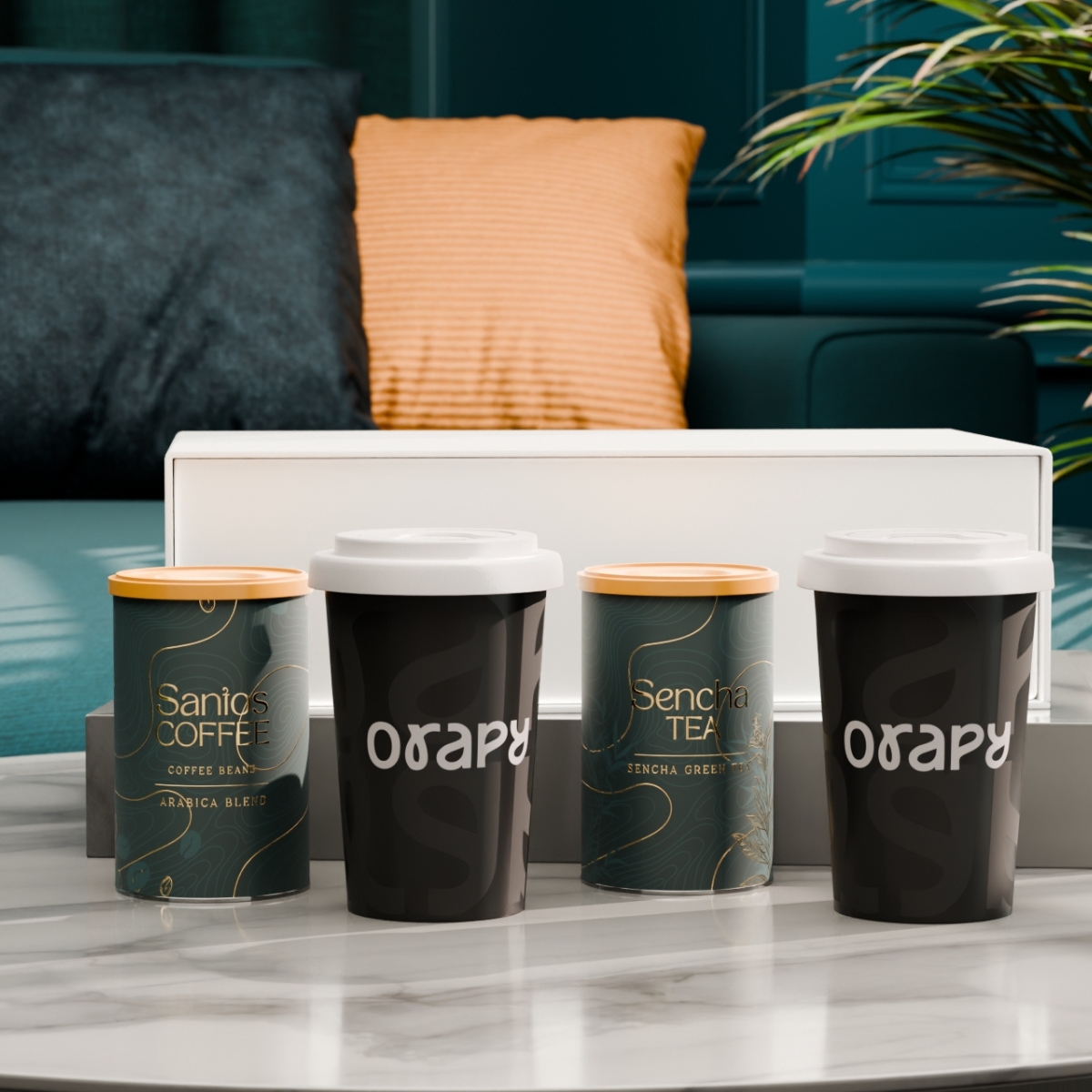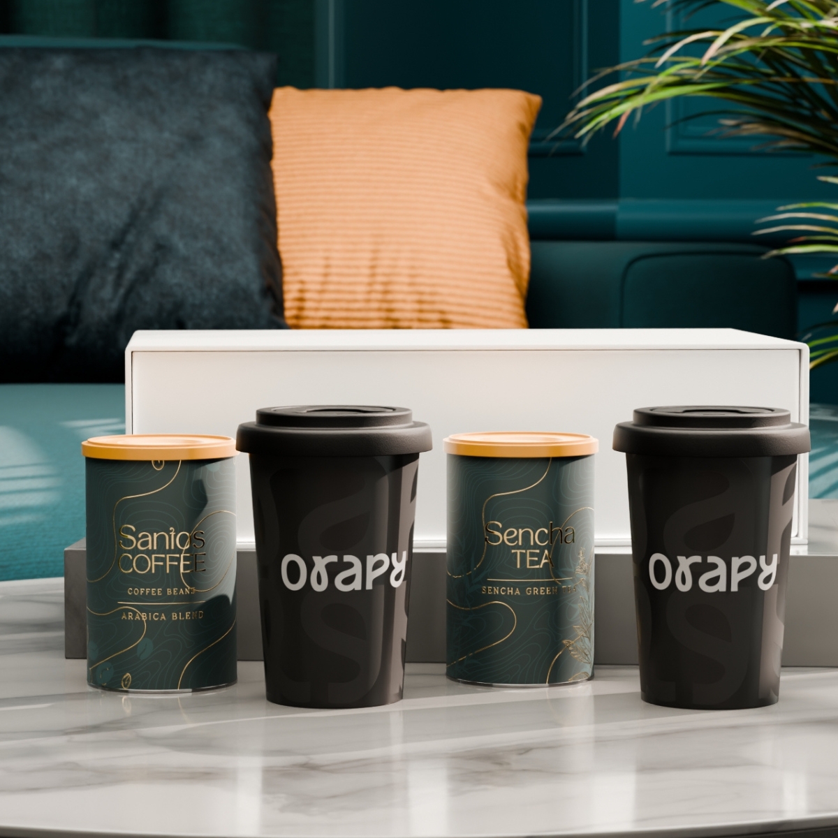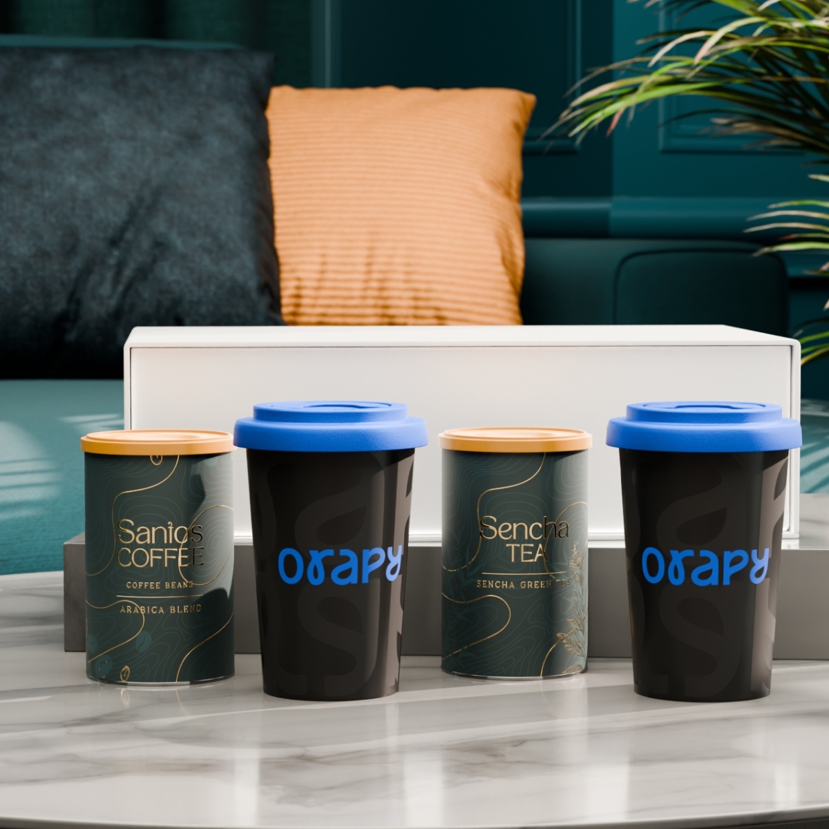 El set con las tazas móviles Freedom combina movilidad y branding sutil. En su interior también incluye café seleccionado “Santos Coffee” y té “Sencha Tea”, presentados en elegantes latas. Todo el conjunto se presenta en un exclusivo estuche blanco nieve con cierre magnético. La tapa está disponible en los siguientes colores: blanco, naranja 021C, gris Cool Gray 7, rojo 200C, azul marino 294C, marrón 4695C, negro, rosa 4064C, azul 2144C, eucalyptus 5493C, desert sand 2310C.